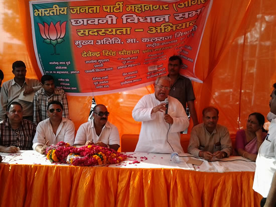 kalraj_ji_1भारतीय जनता पार्टी द्वारा चलाएं जा रहे विशेष सदस्यता अभियान के अन्र्तगत पार्टी के राष्ट्रीय व प्रदेश नेतृत्व के प्रमुख नेतागणों ने 26, 27 व 28 जुलाई को प्रदेश भर मे सदस्यता अभियान कार्यक्रमों को गति प्रदान किया। इस क्रम मे तीसरे दिन आज 28 जुलाई को प्रदेश के विभिन्न जनपदों मे कार्यक्रम सम्पन्न हुए।