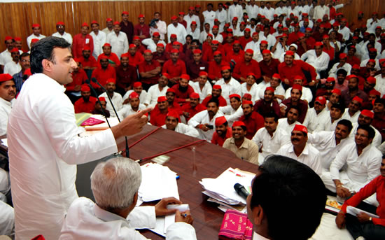 6-08-bसमाजवादी पार्टी के युवा संगठनों के जिलाध्यक्षों/नगर अध्यक्षों की बैठक आज पार्टी मुख्यालय 19, विक्रमादित्य मार्ग, लखनऊ में हुई जिसे मुख्य अतिथि, समाजवादी पार्टी के प्रदेश अध्यक्ष एवं मुख्यमंत्री अखिलेश यादव ने सम्बोधित किया। समाजवादी युवजन सभा के प्रदेश अध्यक्ष  नफीस अहमद ने बैठक की अध्यक्षता की। संचालन निर्भय सिंह पटेल (प्रदेश अध्यक्ष लोहिया वाहिनी) ने किया। बैठक में सर्वश्री धर्मेन्द्र यादव(साॅसद) ओमप्रकाष सिंह (प्रदेश महासचिव) प्रदेश प्रवक्ता राजेन्द्र चैधरी, आनन्द भदौरिया (राष्ट्रीय अध्यक्ष लोहिया वाहिनी), संजय लाठर (राष्ट्रीय अध्यक्ष,युवजन सभा), सुनील यादव (राष्ट्रीय अध्यक्ष छात्रसभा) अमिताभ बाजपेयी(राष्ट्रीय अध्यक्ष  मुलायम सिंह यूथ बिग्रेड)राकेश सिंह, संग्राम सिंह यादव, पवन पाण्डेय (विधायकगण) नईमुल हसन (प्रदेश अध्यक्ष मुलायम सिंह यूथ बिग्रेड), राजपाल कश्यप, प्रदेश अध्यक्ष छात्रसभा ने भी इसमें शिरकत की।