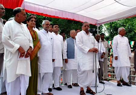 sp-independence-day-mulayam-singh-yadavसमाजवादी पार्टी के राष्ट्रीय अध्यक्ष श्री मुलायम सिंह यादव ने आज यहाॅ समाजवादी पार्टी मुख्यालय 19, विक्रमादित्य मार्ग, लखनऊ में ध्वजारोहण के पश्चात अपने संबोधन में युवा पीढ़ी को आजादी के संघर्ष की शानदार गाथा से परिचित कराने और बलिदानियों के आजाद भारत में अन्याय, शोषण और गैर बराबरी से मुक्ति के सपने को साकार करने का संकल्प लेने का आवाहन किया ।