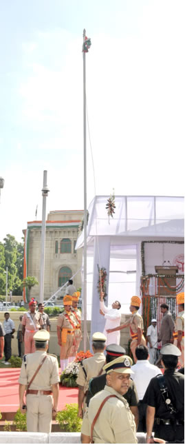 up-cm-akhilesh-yadav-in-vidhan-sabha-in-independence-flag-ceremany-11उत्तर प्रदेश के मुख्यमंत्री श्री अखिलेश यादव ने देश की आजादी की 65वीं वर्षगांठ के अवसर पर प्रदेशवासियों को शुभकामनाएं देते हुए कहा कि यह अवसर स्वाधीनता संग्राम सेनानियों और महान राष्ट्रनायकों को श्रद्धांजलि अर्पित करने का दिन है। उन्होंने यह भी कहा कि इस मौके पर हम सभी को चिन्तन करना चाहिये कि जिन उद्देश्यों को प्राप्त करने के लिए हमने आजादी हासिल की थी, उन्हें पाने की दिशा में हम कितना आगे बढ़े हैं।