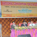 up-cm-national-convention-for-ca-student-iउत्तर प्रदेश के मुख्यमंत्री श्री अखिलेश यादव ने कहा कि अवस्थापना सुविधाओं विशेष रूप से सड़क निर्माण, बिजली व्यवस्था तथा अन्य महत्वपूर्ण क्षेत्रों में आवश्यक सुधार करते हुए सरकार प्रदेश को विकास के पथ पर आगे ले जाने के लिए गम्भीर प्रयास कर रही है। उन्होंने कहा कि जब तक उत्तर प्रदेश का चैमुखी विकास नहीं होगा, तब तक देश में खुशहाली नहीं आ पाएगी। उन्होंने कहा कि राज्य सरकार के वित्तीय संसाधन सीमित हैं, इसलिए पी0पी0पी0 के आधार पर अवस्थापना सुविधाओं का विकास तथा सड़क निर्माण कराए जाएंगे। सरकार सड़कों के निर्माण में लगभग 50-60 हजार करोड़ रुपए का निवेश कराने के लिए प्रयासरत है। उन्होंने कहा कि वर्तमान राज्य सरकार अच्छी सड़कों को विकास और खुशहाली का मूल मंत्र मानती है।