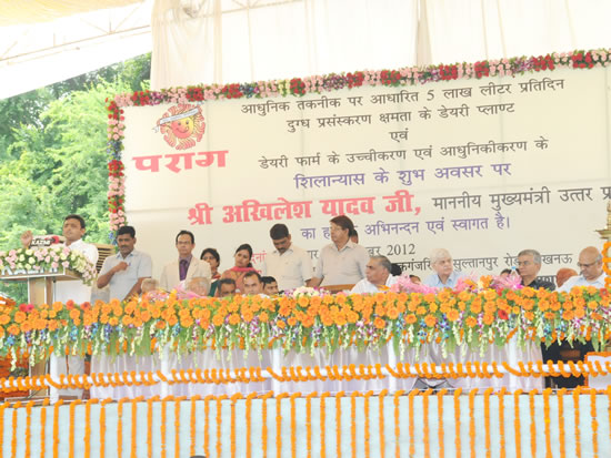 parag-dairy-farm-up-cm-akhilesh-yadav-speechशिलान्यास के अवसर पर साॅसद श्रीमती सुशीला सरोज, विधायक, श्री शारदा प्रताप शुक्ल, श्रीमती चन्द्रा रावत, श्री इंदल रावत एवं अशोक यादव तथा मुख्य सचिव श्री जावेद उस्मानी सहित प्रमुखसचिव श्री वी0पी0 नीलरत्न, श्री राकेश गर्ग, श्री आलोक रंजन, एपीसी तथा अन्य अधिकारी भी मौजूद थे।