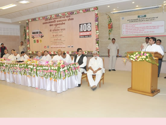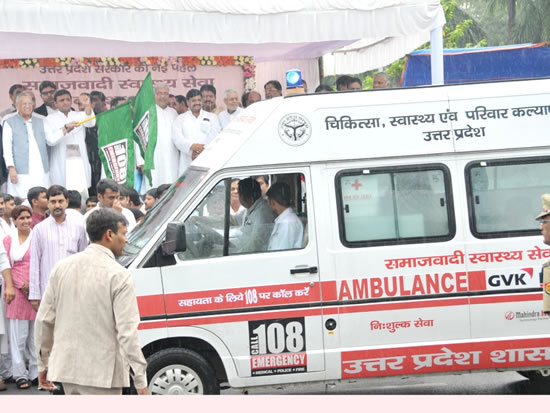 इस अवसर पर श्री यादव ने कहा कि हमारी सरकार गरीब की मदद के लिए हर स्तर पर ईमानदारी से कार्य कर रही है। हर विभाग में नए ढंग से ऐसे फैसले लिए जा रहे हैं, ताकि आम आदमी लाभान्वित हो सके। उन्होंने कहा कि यह बात गौर करने की है कि जिस विभाग पर पिछली सरकार में सबसे ज्यादा उंगलियां उठी थीं, वही विभाग इस सरकार में उल्लेखनीय कार्य कर रहा है। उन्होंने इसके लिए स्वास्थ्य मंत्री श्री अहमद हसन को बधाई देते हुए कहा कि उन्हें खुशी है कि आज से प्रदेश के 13 जनपदों में फस्र्ट एड तथा उपचार उपकरणों से सुसज्जित 133 इमरजेन्सी एम्बुलेन्स उपलब्ध कराई जा रहीं हैं। समाजवादी स्वास्थ्य सेवा के लिए मोबाइल अथवा किसी भी फोन से टोल फ्री 108 नम्बर डायल करने पर 20 मिनट के अन्दर एम्बुलेन्स फोन करने वाले व्यक्ति के बताए पते पर पहुंच जाएगी और निकट के अस्पताल तक मरीज को निःशुल्क पहुंचाएगी।