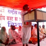 govindacharyaराष्ट्रीय स्वाभिमान आंदोलन के संस्थापक-संरक्षक व सुप्रसि( स्वदेशी विचारक श्री के. एन. गोविन्दाचार्य  के नेतृत्व में आज दिनंाक 1 अक्टूबर 2012 को देशभर से आए हजारों कार्यकत्ताओं ने राजघाट पर महात्मा गंाध्ी को श्र(ा सुमन अर्पित करने के उपरांत जंतर मंतर तक मार्च निकाला एवं पूरे दिन जंतर मंतर पर ध्रना दिया। आंदोलन की प्रमुख मांग केन्द्रीय बजट का 7» सीध्े ग्राम पंचायतो को देने के संबंध् मे है। इस क्रम में इसी वर्ष 12, 13 एवं 14 मार्च को तीन दिवसीय ध्रना आयोजित किया गया था और प्रधनमंत्राी को ज्ञापन दिया गया था। किन्तु अभी तक कोई कार्यवाही न होने के कारण इस ध्रने का आयोजन किया गया। इस संबंध् में इसी मांग को लेकर पफरवरी 2013 में रामलीला मैदान में विशाल जनसभा का प्रदर्शन कर सरकार पर दबाब बनाने का निर्णय भी लिया गया है।