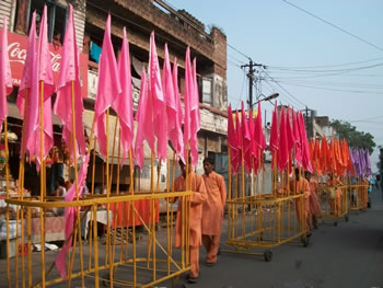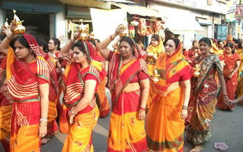 100_7237घट यात्रा (कलश यात्रा) के साथ डालीगंज जैन मंदिर में श्री 108 समवसरण पाश्र्वनाथ पद्मावती महामण्डल विधान एवं विश्वशांति महायज्ञ की शुरुआत हुई।