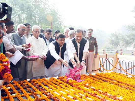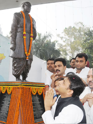 pressउत्तर प्रदेश के मुख्यमंत्री अखिलेश यादव ने आज सरदार बल्लभ भाई पटेल तथा आचार्य नरेन्द्र देव की जयन्ती के अवसर पर इन दोनों महान नेताओं को याद कर इन्हें श्रद्धा-सुमन अर्पित किए। press-3मुख्यमंत्री ने आज प्रातः जी0पी0ओ0 पार्क हजरतगंज, लखनऊ स्थित सरदार बल्लभ भाई पटेल की प्रतिमा पर माल्यार्पण किया। इसके बाद उन्होंने मोती महल लाॅन के पीछे स्थित आचार्य नरेन्द्र देव जी की समाधि पर पुष्पांजलि अर्पित की। इन अवसरों पर प्रदेश के समाज कल्याण राज्य मंत्री नरेन्द्र वर्मा, विधान परिषद सदस्य राजेन्द्र चैधरी, पूर्व सांसद भगवती सिंह सहित बड़ी संख्या में जनप्रतिनिधि एवं सामाजिक कार्यकर्ता तथा गणमान्य व्यक्ति उपस्थित थे।