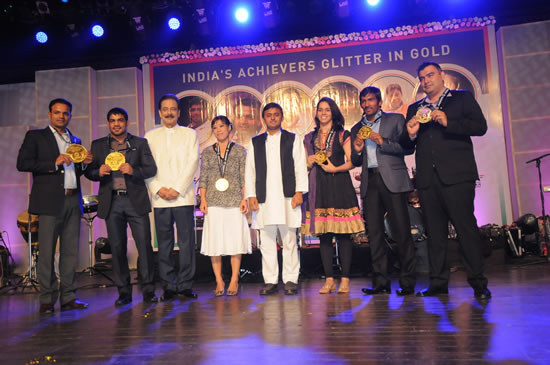 saharaSahara India Pariwar, a major business conglomerate and the prime promoter & patron of sports in India, today honoured the Indian sportspersons who won medals in the recently held London Olympics, in a grand felicitation ceremony organised at Sahara Shaher, Lucknow. Prior to the commencement of the London Olympics, Sahara India Pariwar, in July this year, had announced to award medals of pure gold of 5 Kg, 3 Kg and 2 Kg to every Indian winning gold, silver and bronze medal respectively in the London Olympics 2012. In pursuance of the said announcement, a ceremony was organised to award medals to the Indian Olympic winners. The ceremony witnessed the awarding of a big 3 kg medal of pure gold to the sportsmen who won silver medal in London Olympics 2012, namely, Shri Vijay Kumar (Shooting) and Mr. Sushil Kumar (Wrestling), whereas 2 Kg medals of pure gold were awarded to the Indian sportspersons - Shri Gagan Narang (Shooting), Ms. Saina Nehwal (Badminton), Ms. Mary Kom (Boxing) and Shri Yogeshwar Dutt (Wrestling) for winning bronze medal in the London Olympics 2012. The awards were presented to the sportspersons by Shri Akhilesh Yadav, Hon’ble Chief Minister, Uttar Pradesh, amongst the presence of many dignitaries from across all walks of life.