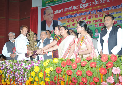 इस अवसर पर समाजवादी पार्टी के राष्ट्रीय अध्यक्ष श्री मुलायम सिंह यादव ने अपने सम्बोधन में कहा कि देश को मजबूत बनाने के लिए नागरिकों का स्वस्थ और शिक्षित होना आवश्यक है। दुनिया में वही देश मजबूत है, जहां के नागरिक स्वस्थ और शिक्षित हैं। उन्होंने कहा कि देश व प्रदेश को आगे ले जाने का दायित्व शिक्षकों का है। विद्यार्थियों की जिज्ञासा को शांत करना भी शिक्षकों की जिम्मेदारी है।