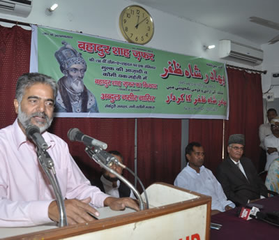 bahadur-shah-jafar1857 की स्वतंत्रता संग्राम की अगुवाई करने वाले भारत के आखिरी मुगल बादशाह बहादुर शाह ज़फर की 150वीं पुण्य तिथि पर आज यू0पी0प्रेस क्लब में एक संगोष्ठी का आयोजन किया गया। प्रदेश के जन्तु उद्यान राज्य मंत्री डा0 शिव प्रताप यादव ने कहा कि सही अर्थ में वे एक सच्चे भारतीय और क्रांतिकारी थे। बहादुर शाह ज़फर की प्रेरणा और उनकी एक आवाज पर सारे भारतीय राजा, चाहे वे हिन्दू या मुसलमान हो, सभी लोग एक साथ संगठित होकर अंग्रेजों के खिलाफ जंग में भाग लिया। उन्होंने कहा कि कुछ कारणों से ये अभियान सफल नहीं हुआ वरना हमारा देश सन् 1857 में ही आजाद हो जाता। श्री यादव ने कहा कि उनकी इस कुर्वानी के लिए देश सदैव ऋणी रहेगा तथा मैं उनकी बहादुरी को सलाम करते हुए सच्ची श्रंद्धाजलि अर्पित करता हूॅं।