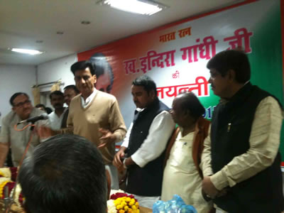 भारत रत्न-पूर्व प्रधानमंत्री स्व0 श्रीमती इन्दिरा गांधी जी के जन्मदिवस (19नवम्बर) के मौके पर आज कंाग्रेस पार्टी द्वारा विभिन्न कार्यक्रमों का आयोजन किया गया। जिसके तहत सर्वप्रथम उत्तर प्रदेश कंाग्रेस कमेटी मुख्यालय, नेहरूभवन, 10 माल एवेन्यू के प्रांगण में प्रदेश कंाग्रेस अध्यक्ष डाॅ0 निर्मल खत्री, सांसद की अध्यक्षता में जयंती समारोह का आयोजन किया गया। कार्यक्रम का संचालन पूर्व विधायक श्री हरीश बाजपेई ने किया। कार्यक्रम की शुरूआत इंदिरा जी के चित्र पर पुष्पांजलि से हुई।