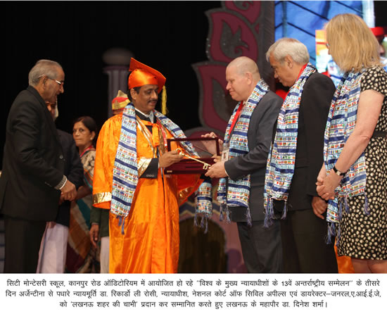 न्यायाधीश श्री बेंजामिन जे. ओडोकी द्वारा दीप प्रज्वलन से हुआ। इस अवसर पर लखनऊ के मेयर डा. दिनेश शर्मा ने अर्जेन्टीना से पधारे न्यायमूर्ति डा. रिकार्डो ली रोसी, न्यायाधीश, नेशनल कोर्ट आॅफ सिविल अपील्स एवं डायरेक्टर-जनरल, ए.आई.ई.जे, को ‘लखनऊ शहर की चाभी’ प्रदान कर सम्मानित किया।