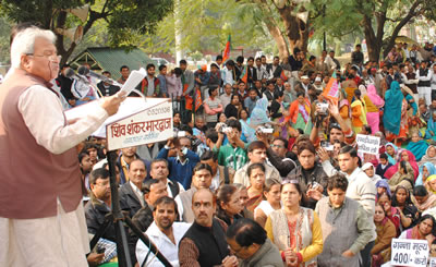 कार्यक्रम के दौरान प्रदेश अध्यक्ष मुन्ना सिंह चैहान ने कहा कि वर्तमान प्रदेश सरकार भ्रष्टाचार मे आकंठ डूबी हुयी है इसका प्रदेश के विकास व किसानों, नौजवानों तथा प्रदेश की जनता से कोई लेना देना नहीं है। प्रदेश सरकार पिछली सरकार से मुकाबला करके आगे निकलते हुये भ्रष्टाचार व अन्याय की मिसाल कायम करना चाहती है।