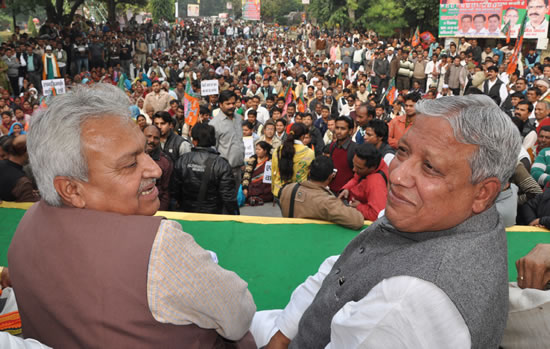 bjp1भाजपा द्वारा ध्वस्त कानून व्यवस्था/किसानों की समस्याओं को लेकर पूर्व घोषित मेरठ की ”हाहाकार रैली ” में हजारों की संख्या में लोगों ने मेरठ के कमिश्नरी चैराहे पर बढ़ते अपराध और लूंज-पुंज प्रशासन के खिलाफ भाग लिया। भाजपा प्रदेश अध्यक्ष डा0 लक्ष्मीकांत बाजपेयी ने रैली में आये अपार जनसमूह को सम्बोधित करते हुए प्रदेश सरकार की जम कर खिचाई की। उन्होंने कहा फिर से सपा सरकार आने से प्रदेश मंे अपराध की बाढ़ आ गई है। 7 माह के कार्यकाल में 10 दंगे और 16 मार्च से 16 दिसम्बर के बीच 1446 हत्या, 246 रेप, 1483 लूट/चोरी, 939 गुण्डा गर्दी, 149 अपहरण के केस दर्ज होना इस बात के पुख्ता प्रमाण है कि सपा सरकार में कानून व्यवस्था पूरी तरह फेल है।