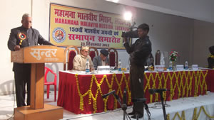 The working President of the Mission, Lucknow, Sri A.S. Kapoor, delivered a key-note address. At the outset, Sri Govind Ram Agrawal, General Secretary, Mahamana Malaviya Mission, Lucknow gave information to the gathering about various projects being run by the Anpara, Obra (District Sonebhadra) units for the tribal children and of Lucknow & New Delhi, in the social and educational fields.  He demanded that the Government should name the Over Bridge of Gomti Nagar as Malaviya Bridge to honour the great man. All India Vice President of the Mission, Sri Prabhu Narain Srivastava, gave a call to observe 25th December, 2012 as the Sankalp Diwas on the birthday of Pt. Modan Mohan Malaviya. He emphasized that each devotee of the Mahamana and Swami Vivekanand should introspect to do something in person to translate the life ideals of these great leaders.