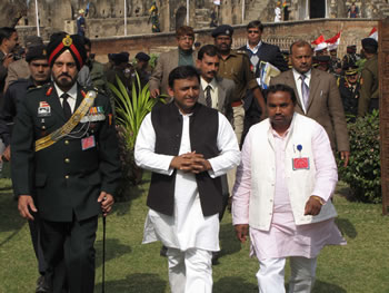up-cm-in-jhanshi-army-function2श्री यादव ने पड़ोसी देशों के साथ शान्तिर्पूण सम्बन्धों पर बल देते हुए कहा कि हमें अपनी सामरिक क्षमता एवं ताकत भी बढ़ानी होगी। उन्होंने कहा कि हाल ही में सीमा पर हमारे दो सैनिकों के साथ जिस बर्बरता का बर्ताव किया गया है, उस घृणित कृत्य की हर देशवासी कठोर निंदा कर रहा। शहीद सैनिक हेमराज के परिवार के साथ प्रदेश सरकार एवं जनता खड़ी है। पीडि़त परिवार को राज्य सरकार की ओर से सहायता उपलब्ध करायी गयी है और आगे भी शहीद के परिवार का पूरा ध्यान रखा जायेगा।