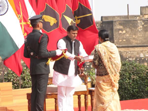 up-cm-in-jhanshi-army-functionमुख्यमंत्री आज सेना दिवस के अवसर पर झांसी दुर्ग में दक्षिणी कमान द्वारा आयोजित वीर सैनिक अलंकरण समारोह को सम्बोधित कर रहे थे। उन्होंने कहा कि यह ऐतिहासिक दुर्ग झांसी की महारानी लक्ष्मीबाई के साहस एवं दृढ़ता का प्रतीक है। रानी लक्ष्मीबाई कठिन से कठिन परिस्थितियों में भी पीछे नहीं हटीं और उन्होंने शत्रुओं के छक्के छुड़ा दिए। देश के लिए अपने प्राण न्योछावर करने वाली रानी लक्ष्मीबाई के इस दुर्ग से हमें देश के लिए मर मिटने की प्रेरणा मिलती है। इस अवसर पर उन्होंने वीर सैनिकों को वीरता पदक प्रदान किए और शहीद जवानों की वीर नारियों एवं सेवानिवृत्त सैनिकों को सम्मानित किया।