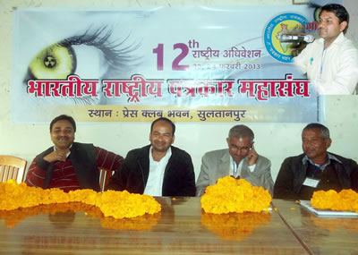 01भारतीय राष्ट्रीय पत्रकार महासंघ का दो दिवसीय राष्ट्रीय महा सम्मेलन प्रेस क्लब सुलतानपुर मे आयोजित किया गया । कार्यक्रम का शुभारम्भ मां सरस्वती की प्रतिमा पर दीप प्रज्वलित कर पुष्प माला अर्रि्पत कर प्रारम्भ हुआ ।