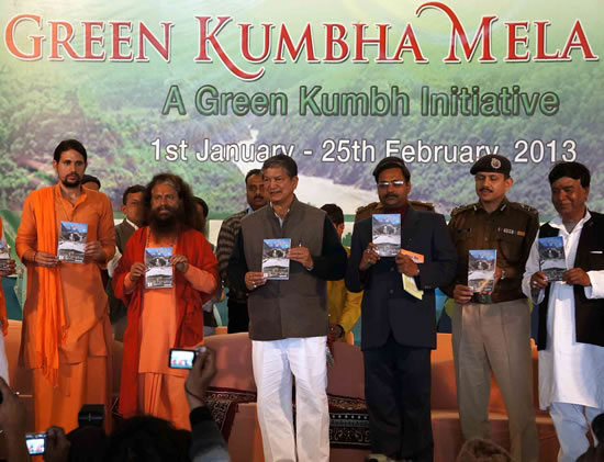 green-khumb-melaकुम्भ मेले में भारत सरकार के जल संसाधन मन्त्री हरीश रावत आज गंगा एक्शन परिवार, परमार्थ निकेतन, ऋषिकेष के अरैल स्थित शिविर में पहुँचे। इस अवसर पर गंगा एक्शन परिवार शिविर में पधारे वरिष्ठ सन्तों ने परमार्थ निकेतन के परमाध्यक्ष