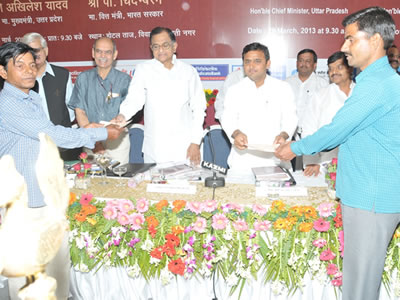 press-2366-6x8इस मौके पर केन्द्रीय वित्त मंत्री श्री पी. चिदम्बरम ने मुख्यमंत्री द्वारा राज्य के विकास के लिए किए जा रहे प्रयासों की सराहना करते हुए कहा कि केन्द्र सरकार राज्य के विकास के लिए हर सम्भव मदद उपलब्ध कराएगी। उन्होंने उत्तर प्रदेश को बड़ा राज्य बताते हुए कहा कि राज्यों के विकास का देश की समृद्धि पर सीधा असर पड़ता है। उन्होंने कहा कि देश की आर्थिक प्रगति के साथ ही प्रदेश की केन्द्रीय राजस्व में हिस्सेदारी बढ़ती जाएगी। उन्होंने उत्तर प्रदेश के योजना आकार में लगातार वृद्धि की प्रशंसा करते हुए कहा कि इससे राज्य में आधारभूत सुविधाओं का विकास होगा।