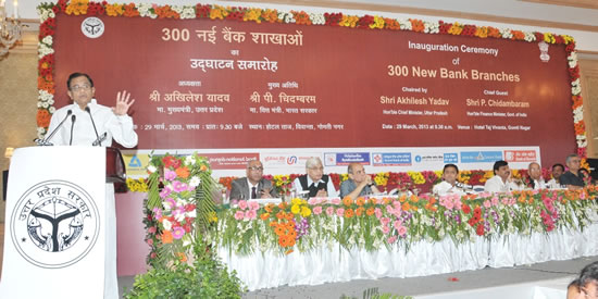 श्री पी. चिदम्बरम का स्वागत करते हुए कहा कि भारतीय रिज़र्व बैंक के गवर्नर श्री डी. सुब्बाराव से मुलाकात के दौरान राज्य में बैंक शाखाओं की और अधिक उपलब्धता का अनुरोध किया गया था। उन्होंने कहा कि इसी के फलस्वरूप राज्य एवं रिजर्व बैंक के बीच मार्च, 2014 तक 3000 नर्इ बैंक शाखाएं खोलने की सहमति बनी। उन्होंने केन्द्रीय वित्त मंत्री से शेष 2700 शाखाएं खोलने के लक्ष्य को शीघ्र प्राप्त करने हेतु सम्बनिधत को निर्देशित करने का अनुरोध भी किया। उन्होंने राज्य सरकार की तरफ से बैंक शाखाएं खोलने में हर सम्भव मदद उपलब्ध कराने का भरोसा दिलाया।