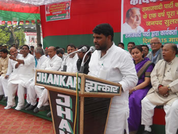 बखान चाहे जो करे मगर जनता आज भी बीते पांच वर्षो की भांति त्राहि माम कर रही है न बिजली, न पानी, न कानून व्यवस्था न सुनवाई हां सपा नेताओं को व्यक्तिगत उपलब्धि तो लगातार प्राप्त होती जा रही है । मगर जनता के हाथ आज भी खाली है आज के कार्यव्रहृम मे जिले के सपा जिलाध्यक्ष रघुवीर यादव, राम सहाय यादव, अशोक सिंह विसेन, हाजी हारुन, परमात्मा यादव, जिला पंचायत अध्यक्ष पृथ्वीपाल यादव, लम्भुआ विधायक सन्तोष पाण्डेय, पूर्व विधायक अनिल पाण्डेय, सुलतानपुर विधायक अनूप सण्डा, महिला आयोग की उपाध्यक्ष डा० सुरभि शुक्ला, कादीपुर विधायक रामचन्द्र चैधरी, जयसिंहपुर विधायक अरुण वर्मा, इसौली विधायक अबरार अहमद, पूर्व एम०एल०सी०शैलेन्द्र सिंह, लोकसभा प्रत्याशी शकील अहमद, हैदर हुसैन, सत्यनारायण रावत समेत तमाम सपा नेता व कार्यकर्ता मौजूद रहे ।