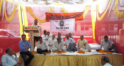 भारतीय रेलवे मे एकल यूनियन के चुनाव के संदर्भ मे जनसभा का आयोजन किया गया ।