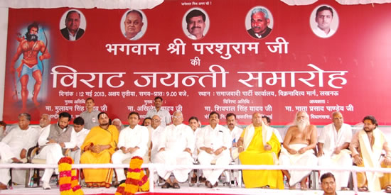 press-5x10उत्तर प्रदेश के मुख्यमंत्री श्री अखिलेश यादव 12 मई, 2013 को समाजवादी पार्टी कार्यालय, लखनऊ में भगवान परशुराम जयन्ती समारोह के अवसर पर। साथ में हैं विधानसभा अध्यक्ष श्री माता प्रसाद व लोक निर्माण मंत्री श्री शिवपाल सिंह यादव।press-1-5x8