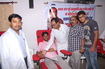 21 मई। भारत रत्न पूर्व प्रधानमंत्री स्वर्गीय राजीव गांधी की पुण्यतिथि पर आज दिन मंगलवार को कांग्रेस कार्यालय मीडिया हाल में आयोजित स्वैच्छिक रक्तदान शिविर में भीषण गर्मी की परवाह न करते हुये दर्जनों कार्यकर्ताओं ने रक्तदान कर मानवता को प्रेरणा देने का काम किया। प्रचंड गर्मी भी रक्तदानियों के हौसले पस्त नहीं कर सकी। शिविर का शुभारम्भ उ.प्र. युवा कांग्रेस अध्यक्ष मध्यजोन अंकित परिहार ने रक्तदान कर किया। बतौर मुख्य अतिथि उ.प्र. कांग्रेस अध्यक्ष डा. निर्मल ख़त्री, डा. रीता बहुगुणा जोशी और डा. नीरज बोरा ने कार्यक्रम में शिरकत की। रक्तदान शिविर का आयोजन लखनऊ लोकसभा युवा कांग्रेस व ट्रांसफ्यूजन मेडिसिन विभाग के संयुक्त तत्वावधान में आयोजित किया गया। इस एक दिवसीय शिविर में लगभग 30 युवाओं ने रक्तदान किया।  edited-dsc_6414
