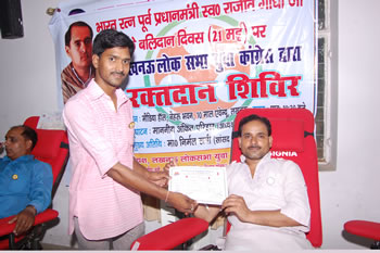 स्वैच्छिक रक्तदान शिविर में प्रदीप त्रिपाठी, अरविन्द कुमार, शाहबाज खान, विशाल सोनकर, महेश चन्द्र वाल्मीकि, साहस खन्ना, सतीश यादव, अभिषेक यादव, अरविन्द यादव, मुन्नालाल भारती, मनोज पाठक, शीलू जायसवाल, प्रकाश भट्ट, सत्येन्द्र सिंह, विनय मिश्रा, जावेद खान, रवि गुप्ता, मुकुल वाल्मीकि, कुलदीप चैधरी, संजीव थापा, कौशल गुप्ता आदि दर्जनों युवा कार्यकर्ताओं ने रक्तदान कर पुनीत कार्य में भाग लिया।