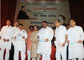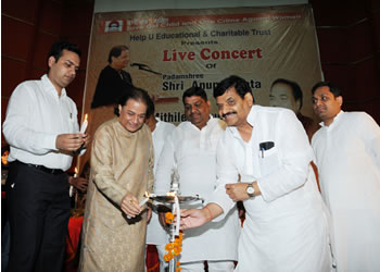 हेल्प यू एजेकेशनल एवं चैरिटेबल ट्रस्ट द्वारा कन्या भ्रूण हत्या व महिलाओं के खिलाफ हो रहे अत्याचार को रोकने के लिए लोगों को प्रोत्साहित करने हेतु मंगलवार 02 जुलाई, 2013 को इन्दिरा गांधी प्रतिष्ठान, गोमतीनगर, लखनऊ में एक सांस्कृतिक संध्या का आयोजन किया गया। कार्यक्रम के मुख्य अतिथि श्री शिवपाल सिंह यादव मा0 मंत्री लोक निर्माण विभाग, उ0प्र0 सरकार और विशिष्ट अतिथि मा0 श्री अरविन्द सिंह ’’गोप’’ ने दीप प्रज्ज्वलन कर कार्यक्रम का शुभारम्भ किया। कार्यक्रम का शुभारम्भ करते हुए मुख्य अतिथि मा0 श्री शिवपाल सिंह यादव ने कहा ’’अनूप जलोटा’’ जी एक बहुत बड़े फनकार हैं और यह हमारे लिए प्रसन्नता की बात है कि वह आज कन्या भू्रण हत्या व महिलाओं के खिलाफ हो रहे अत्याचार को रोकने के इस अच्छे कार्य में हमारे साथ है। भारत में कन्या भ्रूण हत्या का अपराध दिन पर दिन बढ़ता जा रहा है। यह बहुत अफसोसजनक बात है कि एक तरफ हम औरतों की पूजा करते हैं और दूसरी तरफ उन्हें गर्भ में ही खत्म कर देते हैं।