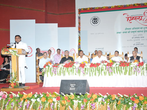 उत्तर प्रदेश के मुख्यमंत्री श्री अखिलेश यादव 15 जुलाई, 2013 को इन्दिरा गांधी प्रतिष्ठान, लखनऊ में ‘हौसला’ अभियान के शुभारम्भ के अवसर पर कार्यक्रम को सम्बोधित करते हुए।