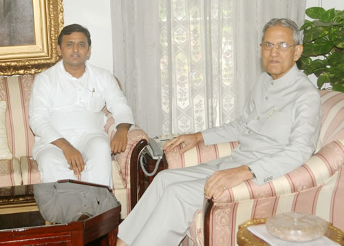 उत्तर प्रदेश के मुख्यमंत्री श्री अखिलेश यादव ने आज राजभवन जाकर राज्यपाल श्री बी0एल0 जोशी से भेंट की।