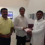 उत्तर प्रदेश के मुख्यमंत्री श्री अखिलेश यादव को दिनांक 16 जुलाई, 2013 को उनके सरकारी आवास पर उत्तराखण्ड की दैवीय आपदा से प्रभावित लोगों की सहायतार्थ श्री सुभाष त्यागी एवं श्री अरुण सिंह चेक देते हुए।