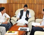 उत्तर प्रदेश के मुख्यमंत्री श्री अखिलेश यादव 25 जुलाई, 2013 को अपने सरकारी आवास पर सेतुओं,
