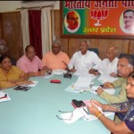 भारतीय जनता पार्टी सितम्बर माह में अपनी प्रदेश कार्य समिति की बैठक मथुरा वृन्दावन में करेगी। इस प्रदेश कार्य समिति में पार्टी के राष्ट्रीय अध्यक्ष श्री राजनाथ सिंह जी एवं राष्ट्रीय चुनाव अभियान समिति के संयोजक श्री नरेन्द्र मोदी जी रहेंगे। पार्टी के प्रदेश प्रवक्ता विजय बहादुर पाठक ने बताया कि इस बैठक के समापन के बाद मण्डल अध्यक्ष और मण्डल महामंत्री के ऊपर के लगभग 15 हजार कार्यकर्ताओं का संगठनात्मक कार्यक्रम होगा। आज प्रदेश पदाधिकारियों की बैठक में प्रदेश अध्यक्ष डा0 लक्ष्मीकांत बाजपेयी एवं प्रदेश के सह प्रभारी श्री रामेश्वर चैरसिया की उपस्थिति में कार्यक्रम तय हुआ। edited-dsc_0027