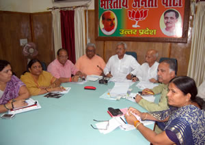 बैठक को सम्बोंधित करते हुए पार्टी के राष्ट्रीय मंत्री एवं सह प्रभारी रामेश्वर चैरसिया ने कहा वातावरण भाजपा के पक्ष में है मोदी की लोकप्रियता दिन प्रति दिन बढ़ती जा रही है। स्वभाविक है कि हम पार्टी का तंत्र चुस्त दुरूस्त करे। स्थानीय स्तर पर उपज रहे मुद्दों पर आंदोलन के लिए तैयार रहे। हम अग्रणी की भूमिका में रहे, जनसरोकारों से जुड़े मुद्दों पर संघर्ष से ही वातावरण बनेगा। पार्टी नेतृत्व को उत्तर प्रदेश से बहुत अपेक्षाएं है, और जो सुचनाएं मिल रही है वो सकारात्मक है उस सकरात्मक हवा को वेग में परिवर्तित हो इसकी हम सब वरिष्ठ जन चिन्ता करें।