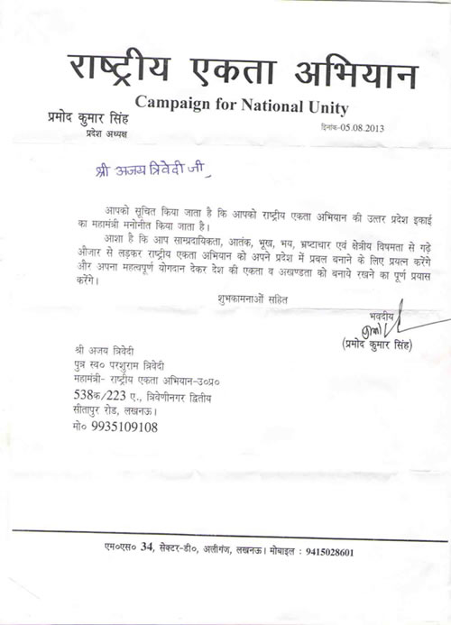 पार्टी के प्रदेश अध्यक्ष डा0 लक्ष्मीकांत बाजपेयी ने आज पार्टी की सदस्यता ग्रहण करने वालो का स्वागत करते हुए कहा कि केन्द्र की यूपीए सरकार के कुशासन से देश को मुक्त कराने के लिए वे पूरे मनोयोग से राष्ट्रवादी विचारधार को मजबूत करते हुए भाजपा को विजयी बनाने के अभियान में अभी से जुट जाये। इस अवसर पर पार्टी के प्रदेश उपाध्यक्ष शिवप्रताप शुक्ल एवं प्रदेश प्रवक्ता विजय बहादुर पाठक भी उपस्थित थे।