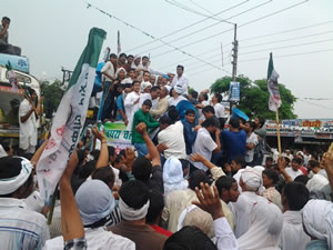 उत्तर प्रदेश में सड़़क, बिजली एवं पानी की बदहाल स्थिति तथा प्रदेश सरकार की किसान विरोधी नीतियों के विरोध में राष्ट्रीय लोकदल के राष्ट्रीय महासचिव एवं लोकसभा सांसद श्री जयन्त चैधरी ने 17 किमी की ऐतिहासिक पदयात्रा की। पदयात्रा की शुरुआत सांसद श्री जयन्त चैधरी के नेतृत्व में बघरा (मुजफ्फरनगर) से हुई तथा समापन करौदा हाथी (शामली) में हुआ। पदयात्रा में लगभग एक लाख से अधिक लोग शामिल हुए। पदयात्रा को लेकर वृद्धों में उत्साह देखने लायक था। edited-20130818_171259