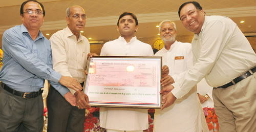 उत्तर प्रदेश के मुख्यमंत्री श्री अखिलेश यादव को उनके सरकारी आवास 5, कालिदास मार्ग पर आज विभिन्न संस्थाओं एवं व्यक्तियों द्वारा उत्तराखण्ड में आयी आपदा से पीडि़त लोगों की सहायता के लिए 03 करोड़ 60 लाख रुपये से अधिक की धनराशि के ड्राफ्ट/चेक मुख्यमंत्री पीडि़त सहायता कोष हेतु उपलब्ध कराये गये। मुख्यमंत्री ने दानदाताओं का आभार व्यक्त करते हुए कहा कि उत्तराखण्ड केे पुनर्निर्माण के लिए अधिक से अधिक आर्थिक सहायता उपलब्ध कराये जाने की आवश्यकता है। उन्होंने कहा कि आपदा पीडि़तों की सहायता के लिए प्रदेश की जनता द्वारा लगातार आर्थिक सहयोग किया जा रहा है। उन्होंने कहा कि आपदा से उबरने के लिए राज्य सरकार द्वारा उत्तराखण्ड के लोगों की हर सम्भव सहायता की जायेगी।  edited-01-5x10-press