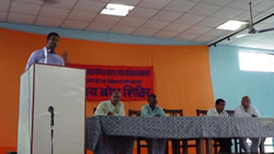 शिविर की अध्यक्षता कर रहे प्रबन्ध समिति अध्यक्ष कृपाशंकर द्विवेदी ने कहा कि छात्रों को मेधावी बनाने में विद्यालय हर समय सहयोग के लिए खड़ा है। अभिभावक अपने बच्चों को प्रेरित करके कि वह स्कूल में पढ़ने के लिए अधिक से अधिक ध्यान केन्द्रित करें और शिक्षकों का सहयोग लेकर भविष्य को उज्जवल बनाये। विद्यालय के वरिष्ठ एवं गणित आचार्य ओम प्रकाश सिंह ने कहा कि अभिभावक आज स्कूल ज्यादा कोचिंग पर विश्वास कर रहे हैं। जबकि यहाॅं का आचार्य रात-दिन छात्र के शिक्षण में सहयोग करने को तत्पर है। उन्होंने यह भी कहा कि विद्यालय की मेरिट में आने वाले बच्चे आचार्य के शिक्षण से इस उच्चता को प्राप्त करते हैं। edited-svm-1प्रधानाचार्य शेषमणि मिश्र ने अभिभावको से छात्रों के लिए आचार्य व विद्यालय से संवाद बनाये रखने की अपील की और कहा कि वह बच्चों की गतिविधियों पर पैनी नजर रखें। छात्रों के विद्यालय न आने पर उनमें भी बेचैनी होनी चाहिए। प्रधानाचार्य ने छात्रों-अभिभावको से लक्ष्य बोध पत्रक भी भरवायें। विद्यालय के प्रबन्धक शिव नारायण तिवारी व बाल कल्याण समिति के मंत्री राम अकबाल पाण्डेय, कामर्स आचार्य शरद श्रीवास्तव ने भी सम्बोधित किया। कार्यक्रम का संचालन आचार्य अनिल कुमार पाण्डेय ने किया।