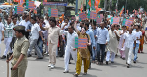 डा0 चन्द्र मोहन ने बताया कि प्रदेश व्यापी धरने प्रदर्शन के क्रम में राजधानी लखनऊ में आयोजित धरना प्रदर्शन का नेतृत्व भाजपा के प्रदेश अध्यक्ष डा0 लक्ष्मीकांत बाजपेयी, प्रदेश उपाध्यक्ष गोपाल टण्डन, महानगर अध्यक्ष मनोहर सिंह ने किया। भाजपा कार्यकर्ताआंे ने नगर कार्यालय से जीपीआंे तक जुलूस निकाल कर प्रदर्शन किया और ए.सी.एम. प्रथम विनोद कुमार को ज्ञापन सौपा।