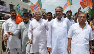 edited-bjp_up_dharna_pradarshan_photos_10प्रदेश अध्यक्ष डा0 बाजपेयी ने कहा कि प्रदेश के 30 विभागों में संचालित 85 योजनाओं के क्रियान्वन में मुस्लिम वर्ग को 20 प्रतिशत आरक्षण देकर प्रदेश की बहुसंख्यक जनता के साथ विश्वासघात किया है। विकास योजनाओं में भेदभाव किया जाना आदर्श राजधर्म की श्रेणी में नही आता। उन्होने कहा कि प्रदेश की जनता को अपने मत के बदले इस प्रकार का व्यवहार पाकर सिवाय हाथ मलने के और कोई चारा नही है। उन्होंने समाजवादी सरकार को आगह करते हुए कहा कि अखिलेश यादव को नही भूलना चाहिए कि जिस जनता की ताकत के भरोसे वह सत्ता मद में चूर है वही जनता इन्हे ऐसी पटखनी देगी कि फिर वह छल करने योग्य बचेगे ही नही ।