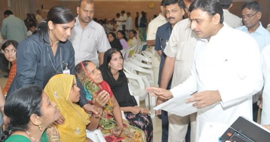 edited-press-1उत्तर प्रदेश के मुख्यमंत्री श्री अखिलेश यादव 4 सितम्बर, 2013 को अपने सरकारी आवास  5, कालिदास मार्ग पर आयोजित जनता दर्शन कार्यक्रम में लोगों की समस्याएं सुनते हुए।