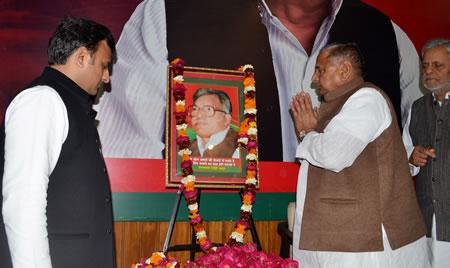 श्री यादव आज यहां समाजवादी पार्टी मुख्यालय, लखनऊ में बिहार के पूर्व मुख्यमंत्री और समाजवादी नेता श्री कपर्ूरी ठाकुर के 93वें जन्मदिवस पर आयोजित कार्यक्रम में आए जनसमूह को सम्बोधित कर रहे थे। इस मौके पर मुख्यमंत्री श्री अखिलेश यादव, लोक निर्माण मंत्री श्री शिवपाल सिंह यादव, कारागार मंत्री श्री राजेन्द्र चौधरी, पर्यटन मंत्री श्री ओमप्रकाश सिंह, खनिज मंत्री श्री गायत्री प्रसाद प्रजापति, पिछड़ा वर्ग आयोग के अध्यक्ष श्री राम आसरे विश्वकर्मा, राज्यमंत्री डा0 राजपाल कश्यप और डा0 हीरा ठाकुर भी मौजूद रहे और उन्होने स्व0 कपर्ूरी ठाकुर के चित्र पर माल्यार्पण किया। इससे पूर्व श्री मुलायम सिंह यादव एवं मुख्यमंत्री श्री अखिलेश यादव ने समाजवादी पार्टी विधायक दल की बैठक को भी सम्बोधित किया।