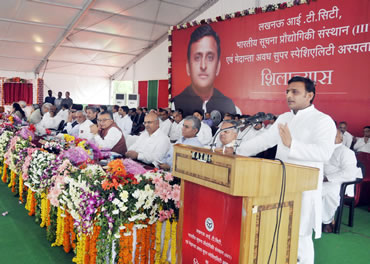 उत्तर प्रदेश के मुख्यमंत्री श्री अखिलेश यादव ने आज सी.जी. सिटी चक गंजरिया में आई.टी. सिटी, भारतीय सूचना प्रौद्योगिकी संस्थान (आई.आई.आई.टी.) तथा मेदान्ता-अवध सुपर स्पेशियलिटी अस्पताल का शिलान्यास किया। इस अवसर पर उन्होंने कहा कि इन परियोजनाओं से जहां बड़ी संख्या में रोजगार के नये अवसर पैदा होंगे, वहीं उत्तर प्रदेश का महत्व भी बढ़ेगा।