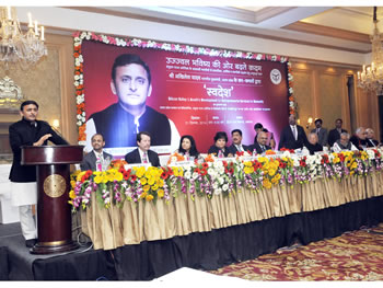 उत्तर प्रदेश के मुख्यमंत्री श्री अखिलेश यादव दिनांक 21 दिसम्बर, 2014 को लखनऊ में ‘स्वदेश’ के शुभारम्भ अवसर पर अपने विचार व्यक्त करते हुए।