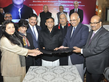 इस अवसर पर टेनासिटी ग्रुप, सिलीकाॅन वैली, कैलिफोर्निया, संयुक्त राज्य अमेरिका (यू.एस.ए.) एवं एन.आर.आई. विभाग, उ.प्र. के मध्य एक ‘इण्टेंट फाॅर को-आॅपरेषन’ भी हस्ताक्षरित किया गया, जिसके अन्तर्गत टेनासिटी ग्रुप उत्तर प्रदेष में कौषल विकास, अनुसंधान, स्वास्थ्य एवं चिकित्सा, वैकल्पिक ऊर्जा, सेमी-कण्डक्टर से संबंधित उद्यम, अपषिष्ट प्रबन्धन आदि क्षेत्रों में परियोजनाएं स्थापित करने के साथ-साथ तकनीकी सहयोग भी प्रदान करेगा।