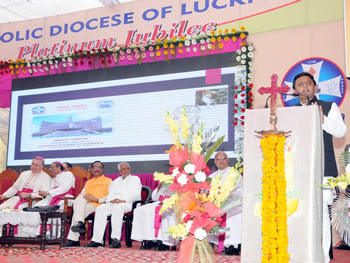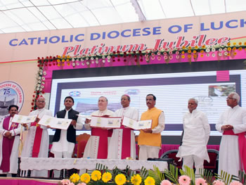 मुख्यमंत्री आज सेण्ट फ्रान्सिस काॅलेज परिसर में आयोजित द कैथोलिक डायोसीज़ आॅफ लखनऊ के प्लैटिनम जुबली समारोह में मुख्य अतिथि की हैसियत से अपने विचार व्यक्त कर रहे थे। उन्होंने कहा कि सभी धर्मों का एक ही लक्ष्य है और सभी मिल-जुल कर रहने का संदेश देते हैं। उन्होंने कहा कि व्यक्ति का जीवन छोटा होता है, लेकिन संस्था लम्बी अवधि तक लोगों के लिए उपयोगी बनी रहती है, इसलिए संस्थाओं को मजबूत बनाने के लिए लगातार काम करना जरूरी होता है। उन्होंने इस बात पर संतोष व्यक्त किया कि ईसाई मतावलम्बियों द्वारा स्थापित संस्थाएं विभिन्न जनपदों में बिना किसी भेदभाव के स्थानीय लोगों की सेवा करने तथा बच्चों को गुणवत्तापरक शिक्षा उपलब्ध कराने का काम कर रही हैं। इन संस्थाओं ने आने वाली पीढ़ी में करूणा के साथ-साथ भाईचारा बढ़ाने तथा मानवता के लिए कार्य करने का प्रभावी संदेश दिया है। इस अवसर पर उन्होंने भारत के पोस्टल विभाग द्वारा समारोह के लिए तैयार किए गए स्पेशल कवर को जारी किया।