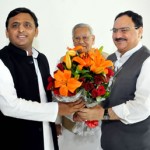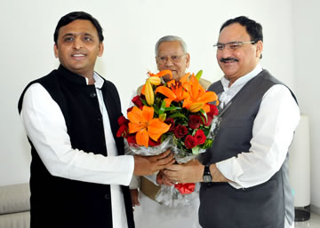 उत्तर प्रदेश के मुख्यमंत्री श्री अखिलेश यादव से आज यहां उनके सरकारी आवास पर केन्द्रीय स्वास्थ्य एवं परिवार कल्याण मंत्री श्री जे.पी. नड्डा ने भेंट की। मुलाकात के दौरान मुख्यमंत्री ने केन्द्रीय मंत्री को स्वास्थ्य सुविधाओं को और बेहतर बनाने के लिए राज्य सरकार के प्रयासों की जानकारी दी। श्री यादव ने श्री नड्डा से प्रदेश की स्वास्थ्य सेवाओं को सुदृढ़ करने के लिए केन्द्र सरकार से अधिक से अधिक सहयोग एवं मदद उपलब्ध कराने का आग्रह किया।