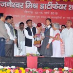मुख्यमंत्री आज यहां ‘जनेश्वर मिश्र हाॅर्टीफेयर-2015’ के समापन अवसर पर अपने विचार व्यक्त कर रहे थे। गोमती नगर विस्तार स्थित जनेश्वर मिश्र पार्क में आयोजित हाॅर्टीफेयर मुख्यमंत्री श्री अखिलेश यादव के क्लीन, ग्रीन और प्रास्परस लखनऊ के विजन को ध्यान में रखते हुए लखनऊ विकास प्राधिकरण द्वारा सूचना विभाग, पर्यटन विभाग एवं संस्कृति विभाग के सहयोग से आयोजित किया गया था। विभिन्न राज्यों के पवेलियन, आयातित पौधों का प्रदर्शन, बोनसाई शो, शादी मण्डप आदि हाॅर्टीफेयर के मुख्य आकर्षण थे। उद्यान विभाग, पुलिस अभिसूचना, पी0ए0सी0 महानगर, लखनऊ नगर निगम सहित एन0बी0आर0आई0, सीमैप, सेन्ट्रल कमाॅण्ड आदि संस्थाओं ने हाॅर्टीफेयर में हिस्सा लिया। मुख्यमंत्री ने हाॅर्टीफेयर के दौरान आयोजित विभिन्न प्रदर्शनियों एवं प्रतियोगिताओं के विजेताओं को पुरस्कार वितरित किए तथा स्मारिका ‘जनेश्वर मिश्र हाॅर्टीफेयर-2015’ का विमोचन भी किया। उन्होंने युवाओं का आह्वान किया कि वे समाजवाद के सिद्धान्तों एवं डाॅ0 राम मनोहर लोहिया और जनेश्वर मिश्र जैसे समाजवादी चिंतकों की विचारधारा से परिचित हों और उसे आगे बढ़ाएं।